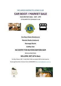 Please feel free to email important community notices for inclusion on this board to: media@mclarendistrictslions.org.au Suitable items will be posted in the interest of the local community.